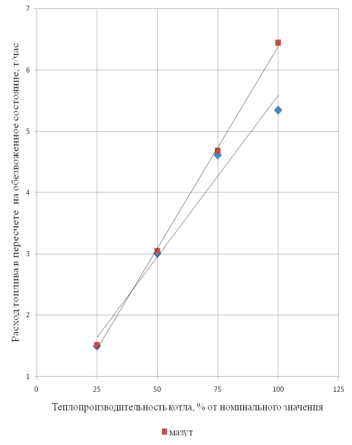 Рисунок 2. Расход топлива в пересчете на обезвоженное