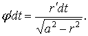 Для определения уравнения кривой лопасти броскового вентилятора воспользуемся вышеуказанным дифференциальным уравнением углового перемещения материальной частицы в относительном движении.
