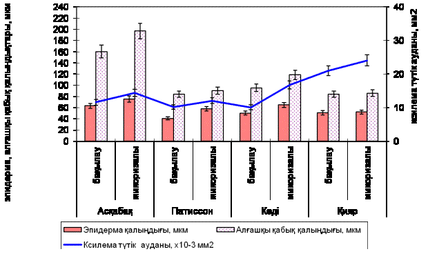 - 160,4 мкм болса, ал микоризасы бар өсімдікте - 197,04 мкм екендігін