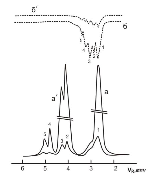 соединений. Так как, первая фракция одновременно фиксируется и по рефрактометру (кривые а и аᴵ, пики