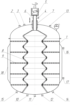 ферментер має сорочку в яку через патрубок 17 подається охолоджуюча або гріюча