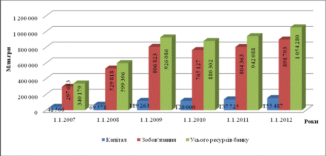 структуру ресурсів банківської системи України у період 01.01.2007 – 01.01.2012