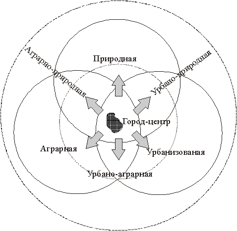 урбанизированной, аграрной и природной (рис.1). В зонах соприкосновения