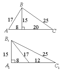 площадь треугольника, если две его стороны 25 и 17, а высота, проведенная