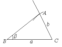 и углу против одной из них (β). Если начать построение с отрезка ВС, равного a, то решение задачи сведётся
