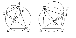 Окружность, описанная около треугольника ADE, пересекает прямую AC в точке F,