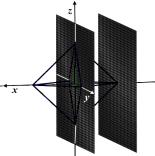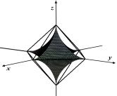 сферу одиничного радіусу. Прямокутну систему координат Oxyz обрано таким чином, що осі проходять через протилежні