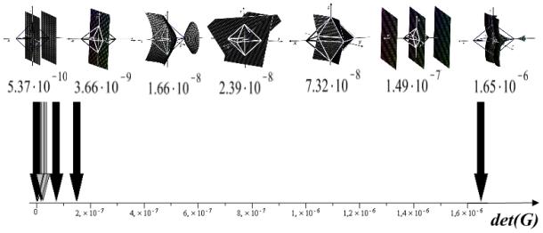 Рис.2. Величина визначника матриці Грама для базисів октаедра [1–5] |