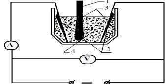 1- фарфоровый пестик; 2- электроды; 3- фарфоровая ступка; 4- цементное тесто