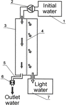total initial water volume. The content of light molecules of 1H216Î in the produced light water amounts to no less than