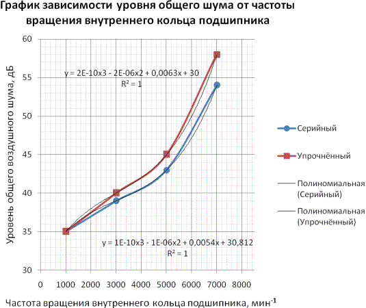 зависимости уровня общего шума от частоты вращения внутреннего кольца