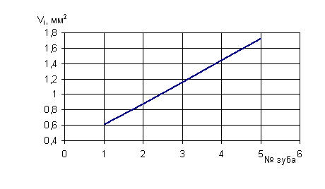 Рис.5. Залежність об’єму металу, витісненого кожним зубом мітчика, від порядкового