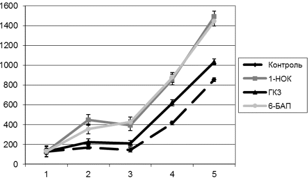 нами дослідженнями встановлено, що за дії 1-НОК та 6-БАП3