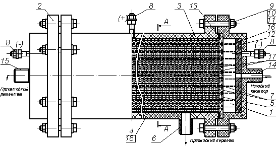 ввода исходного раствора; 15 – штуцер вывода прикатодного ретентата; 16 – щуп цилиндрический;