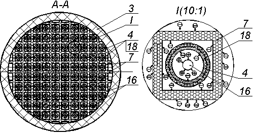 решетке 5 производится при помощи кольцевой прокладки 17. Торцевые фланцы 2