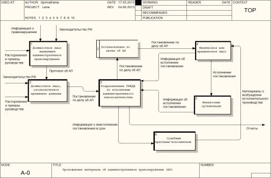 Для выполнения процесса необходимы следующие информационные ресурсы: законодательство Российской Федерации; информация об административном правонарушении; распоряжения и приказы руководства.