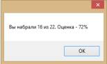 тестируемому присуждается 3 балла и 100%. В случае, если тестируемый совершает