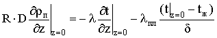 скорость потока воздуха, λ и D – соответственно коэффициенты теплопроводности воздуха и
