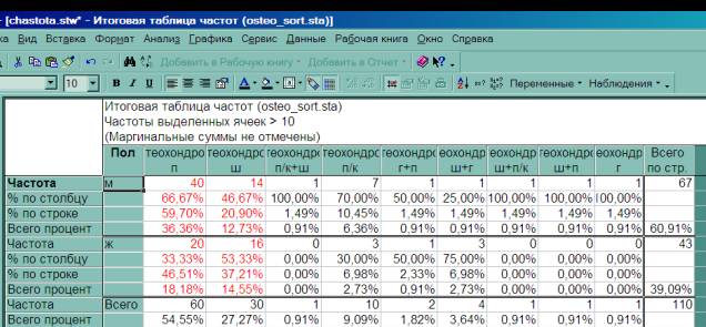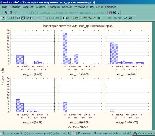 Цель работы. Провести анализ возрастных и половых особенностей развития остеохондроза путем «Таблиц сопряженности, флагов и заголовков».