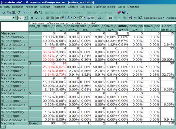 статистическая обработка данных по заболеваемости дегенеративно-дистрофических