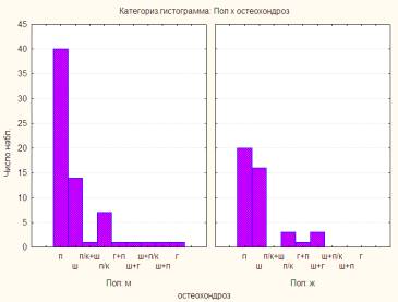 влияние пола на развитие остеохондроза не является значимым, т.е. переменные