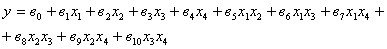 У= 1670-2,57 Х1 +2,57 Х2 -3,75 Х3+ 408 Х4 - 4,5 Х12 +