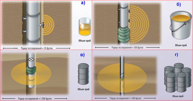 исследования пласта в радиусе нескольких футов от ствола скважины. В