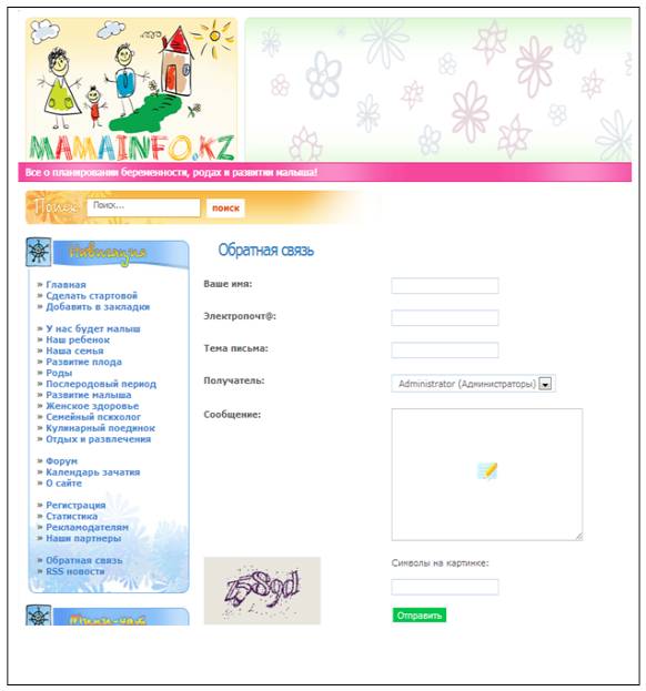 соответствии с рисунком 2 представлена «Обратная связь» с администрацией сайта