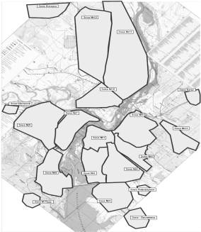 Площадь существующего центрального района, включающего в себя 13 зон, составляет 5 км2 , а суммарные