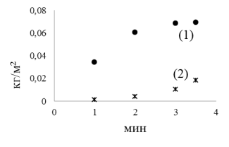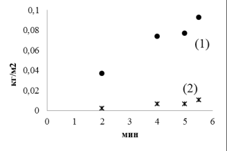 массы стравленного оловянно-свинцового металлорезиста (1) и меди (2) от времени