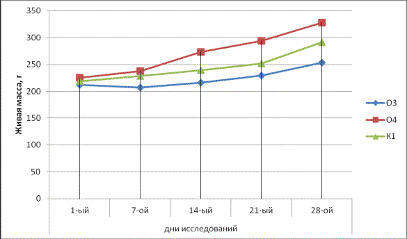 отличался от контрольной группы. В дальнейшем, через две недели эксперимента, происходило увеличение живой массы, по