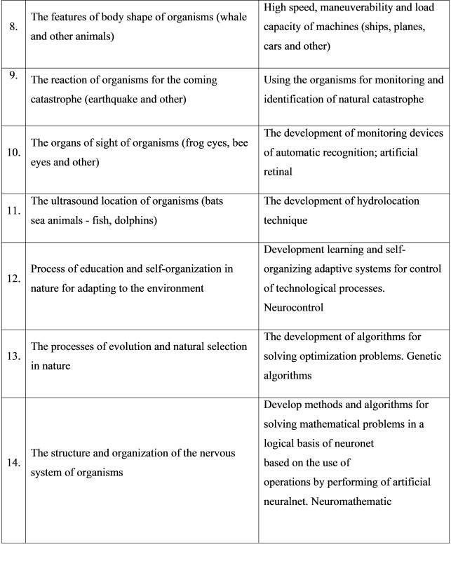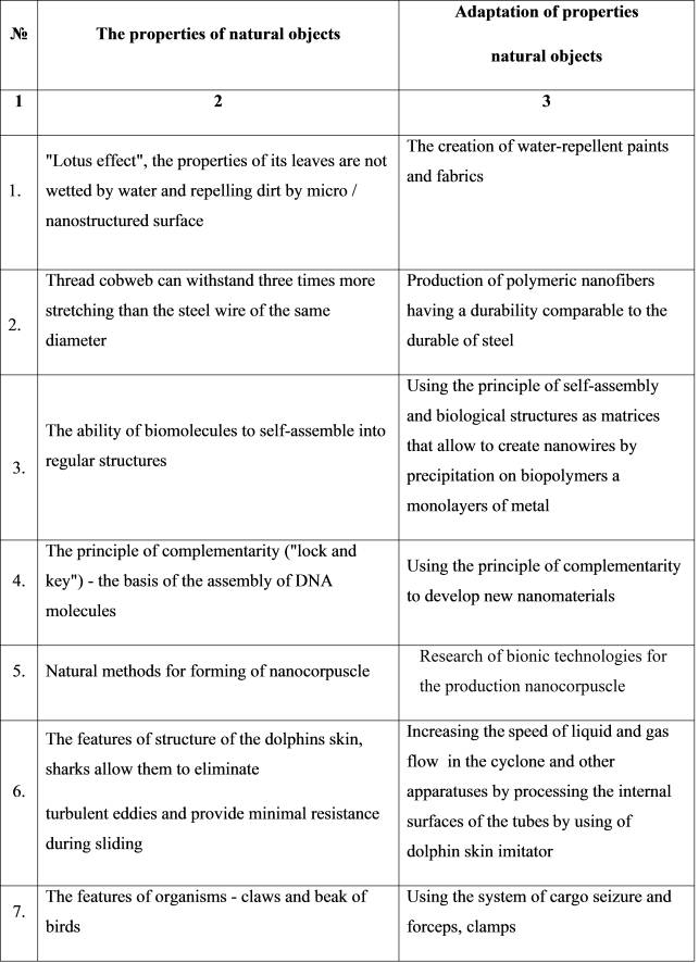 bionics in engineering methods (Table 1).