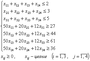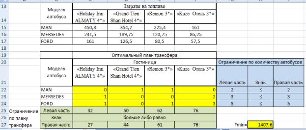 направляемых в j-ую гостиницу. Получаем матрицу Х, которая и представляет собой план распределения транспортных