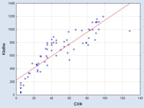 Рис. 2. Зависимость сывороточной концентрации белка Klotho от СКФ