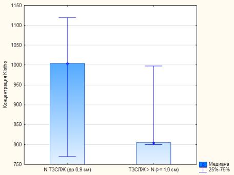 белка Klotho у больных с нормальной ТЗСЛЖ и больных