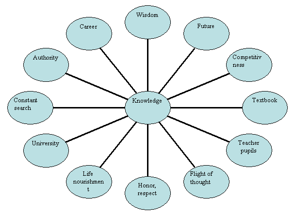 semantic groups of bylym/knowledge concepts. Assosiative mind of lexical unit bilim/knowledge is given in the picture 2.The picture shows that