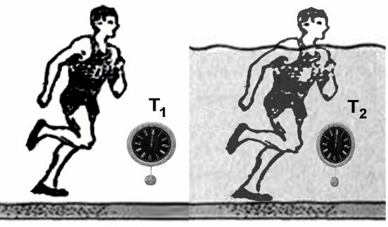 что спортсмен в воде бежит медленнее Т1воздух < Т2воздух