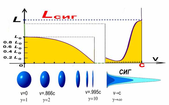 эфирной среды с уменьшением длины тела из-за этого воздействия в графическом