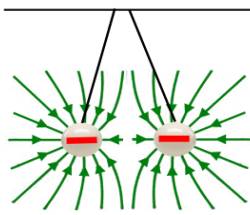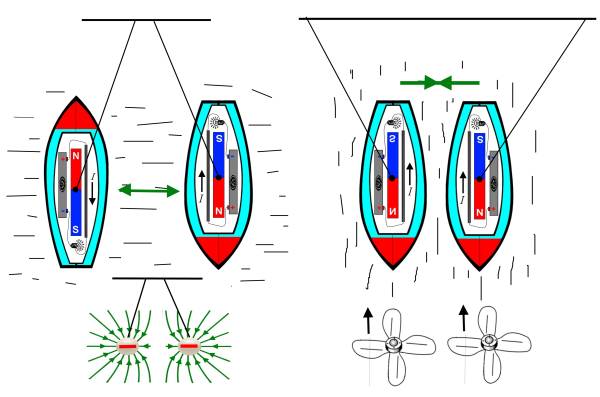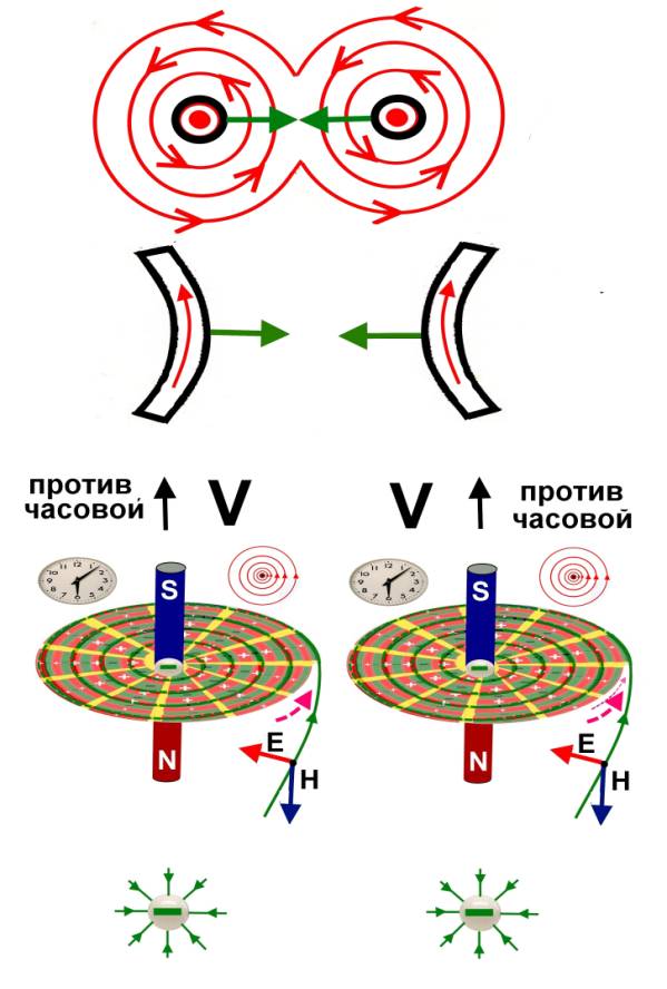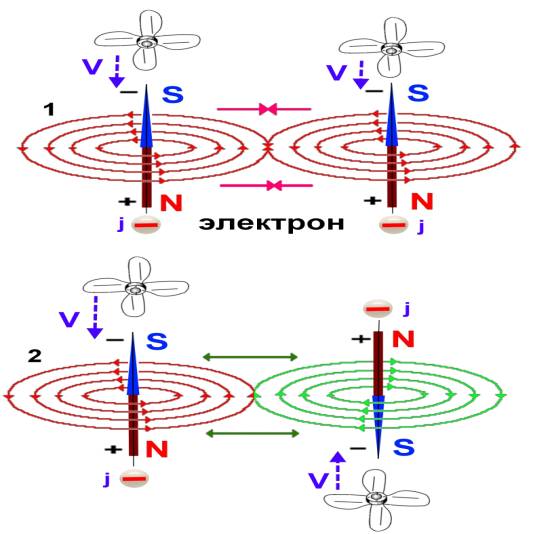 мы получим модель движущихся одинаковых зарядов (притяжение взаимодействующих