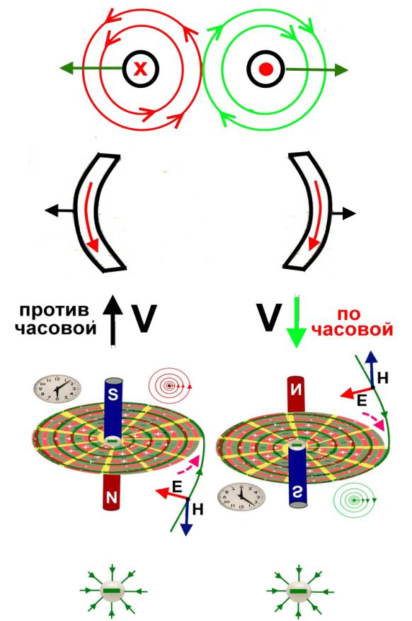 электрон в эфирной теории плоский и имеет магнитную и электрическую составляющие