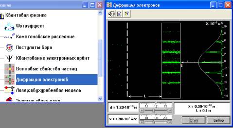 көмекші құрал ретінде-оқушылардың [15] ресурсын пайдаланып «Электрондар дифракциясы. Ой тәжірибесін компьютерлік