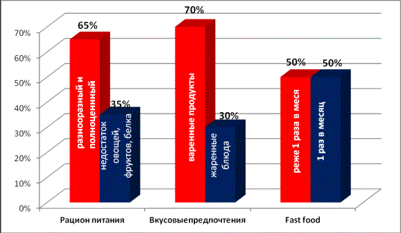 лишь 2 раза в день. 70% исследуемых в своем рационе предпочитают вареную пищу.