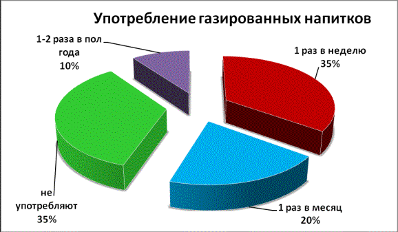 газированных напитков, 35% - употребляют газированные напитки примерно 1 раз в