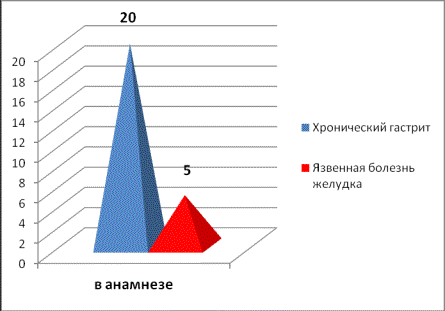 спортсменов в анамнезе - хронический гастрит, у 5 % - язвенная болезнь желудка.