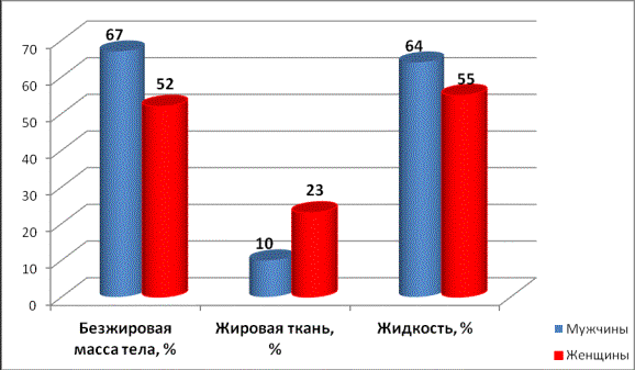 безжировой массы тела у мужчин на уровне 67,09±7,5%, у женщин -