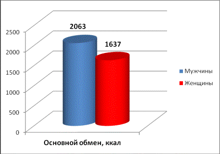 - 23,18±4,24%; основной обмен у мужчин на уровне 2063±270,2 ккал, у женщин -