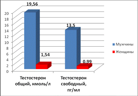 360,8±68,75нмоль/л, общий тестостерон 1,54±0,44 нмоль/л и свободный тестостерон
