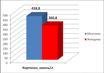 0,99 (0,41-3,92) пг/мл). У мужчин среднее значения кортизола составило