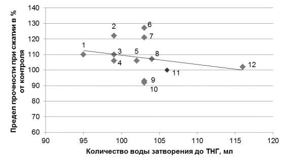 затворения на прочность цемента с добавками.