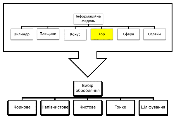 певний логічний вибір. Наприклад призначення методів обробляння для отвору з